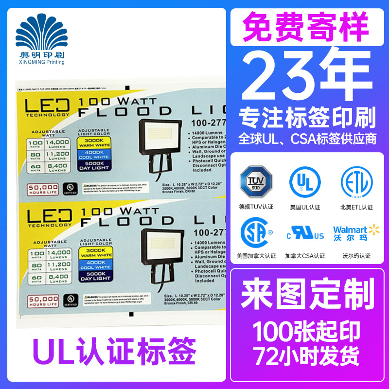 ETL认证铭牌白色PET防水耐温风扇功率贴纸UL969认证标签