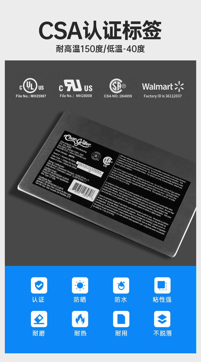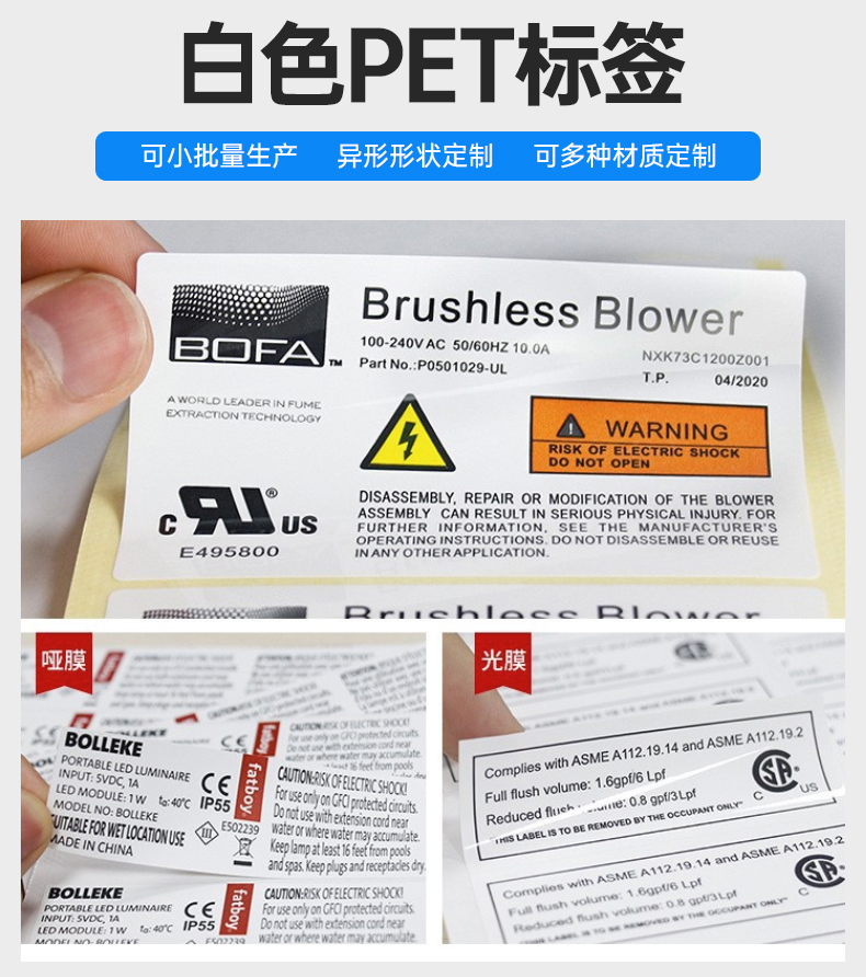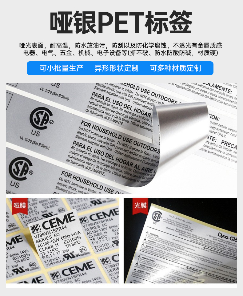 CE防水哑银PET耐高温通风机铭牌贴